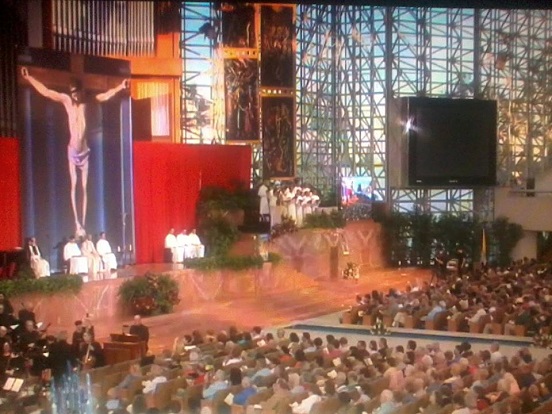 Depois que a mega-igreja protestante foi a falência, seu prédio foi comprado pela Diocese Católica do local, que a usará como sua nova catedral. Sem entrar no mérito da feiúra protestante da igreja, isso tem uma forte simbologia por trás. É uma virada da Igreja Católica nos Estados Unidos, que afinal começou muito pequena, e agora já é a maior denominação cristã dos Estados Unidos. Embora as conversões antes do Vaticano II fossem quase dez vezes maiores, ainda assim, muitos americanos estão largando suas seitas e buscando a verdadeira Igreja de Cristo.