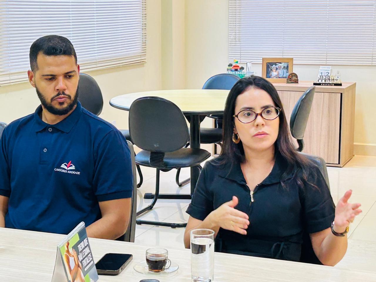 O prefeito Jerry Correia recebeu a titular do Cartório de Assis Brasil, Andreza Andrade, para tratar sobre o processo de regularização fundiária no município. A iniciativa busca garantir segurança jurídica aos moradores e promover o desenvolvimento urbano de forma organizada.