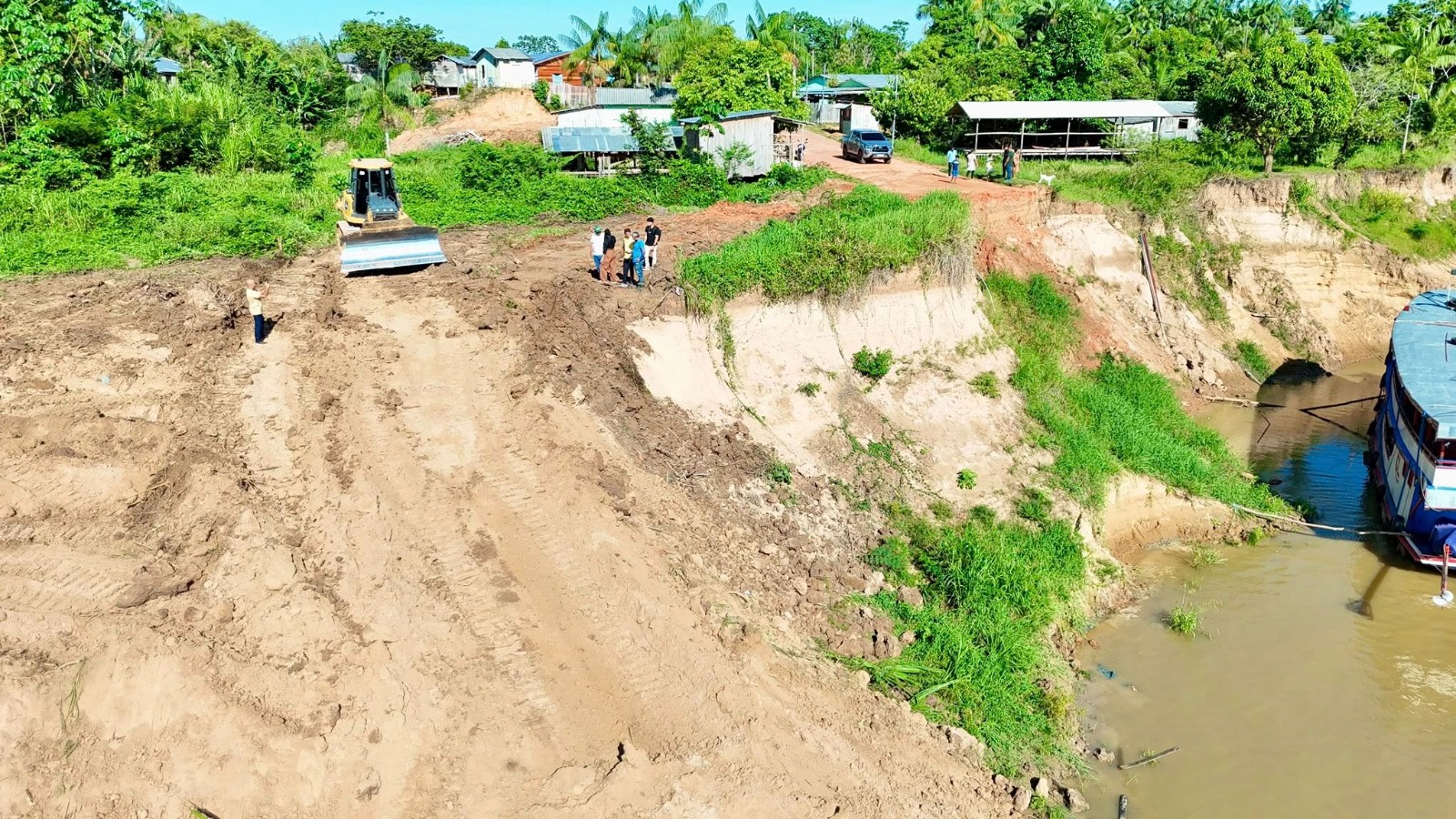A obra se tornou necessária após o desbarrancamento ocorrido na área, que comprometeu a estrutura anterior e trouxe dificuldades para quem depende do porto no dia a dia.